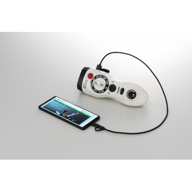 ハイパワーなLEDライトを搭載した新型ラジオライト。ダイナモを廃する事で、ダイナモの出力に制限されていたLEDライトとスマホ充電の機能を大幅にアップしました。簡易ランタンシェードと2in1充電ケーブル付き。