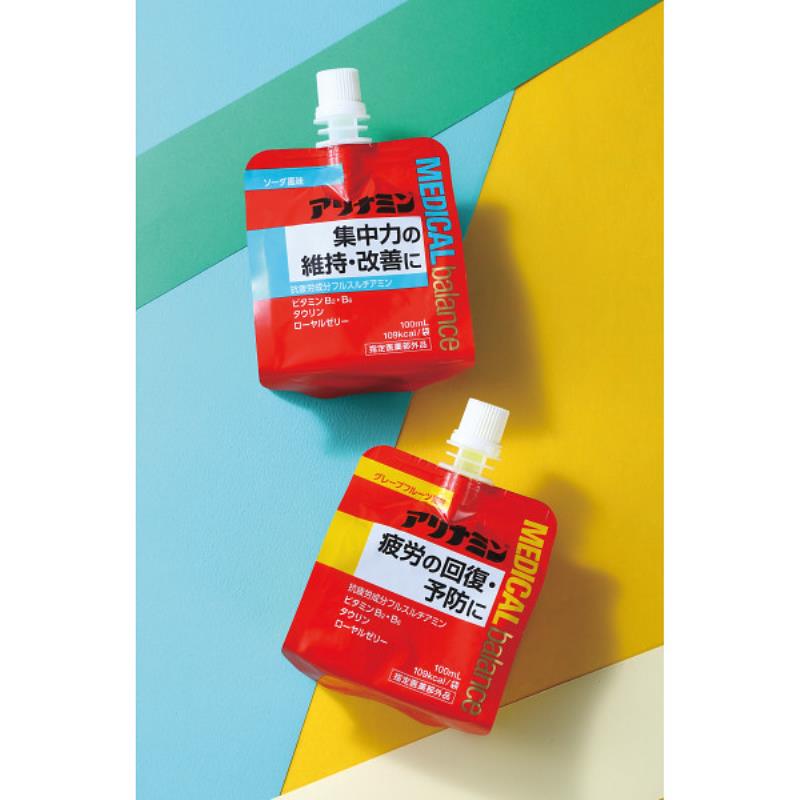 疲労の回復・予防の効能を持ったアリナミンのゼリー状飲料 ※流動性のある粘稠なゲル状の液の製剤