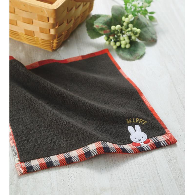 シックなカラーと赤色のチェック柄がポイントのミニタオルです。