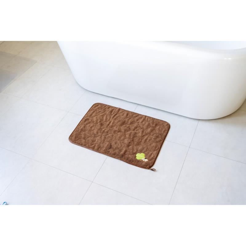 タオル感覚で気軽に洗えるバスマット。キャラクターのワンポイントのアップリケがアクセントになっていて可愛らしいデザイン。マイクロファイバーなので吸水速乾性に優れ、軽くてかさばらずお洗濯が簡単なので、こまめに洗濯でき衛生的。