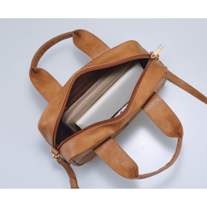 大人可愛いデザインで幅広い年代の方に使って頂ける2WAYショルダーです。高級感のあるシボ合皮を使用し、同色刺繍もポイントの一つです。内装ポケットも付いているので使いやすく、整理整頓しやすい仕様になっています。落ち着いたカラーで、様々な場面で使用できるアイテムです。