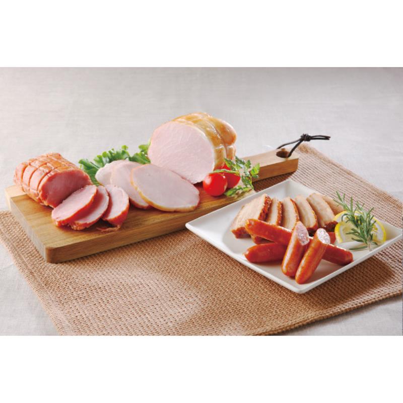商品内容:●特選(ロースハム320g、燻しハム180g、あらびき燻しウインナー80g×3)、たれ漬けばら焼豚165g