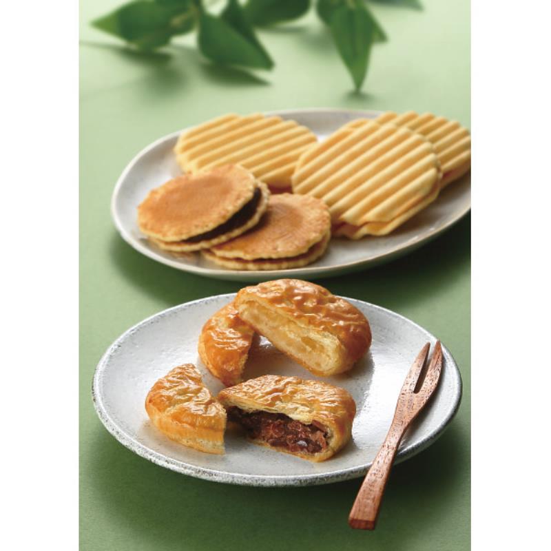 欧風せんべい、餡子をサンドした卵煎餅、パイまんじゅう等、和菓子をバラエティ豊かに詰め合わせたギフト商品です。ご贈答、手土産にも喜ばれる品です。