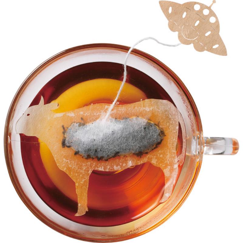 UFOにさらわれる牛のシュールなティーバッグです。ちょっとしたプレゼントに最適です。よくキャトルミューティレーションと言われますが、キャトルミューティレーションは何らかの事情によって内臓や血を抜かれた状態を指すため、このさらわれる状態はアブダクションというそうです。とにもかくにもその状態をティーバッグで再現致しました。