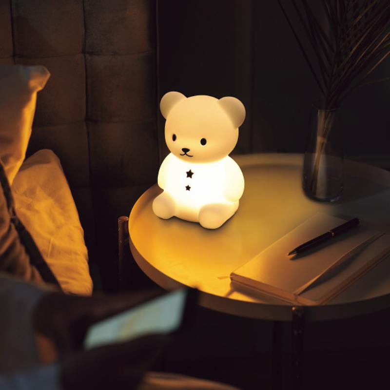 シリコーン樹脂製の柔らかいこぐまのライト。シリコーン部分から底部メカボックスの取り外しができ、シリコーン部分は煮沸消毒することができます。ライトの明るさは3段階で調整ができ、振動センサーとスイッチによる操作の2つのモードが内蔵されています。いずれのモードも30分でオートオフになり、消し忘れがないようになっています。