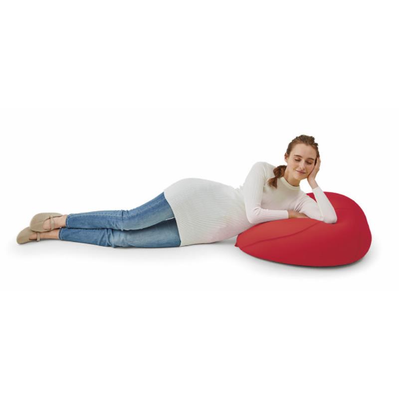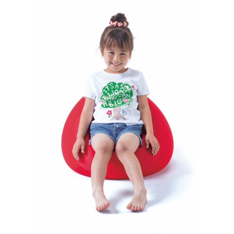 かわいい洋なし型の小さめチェア。座ったり、もたれたり、まくらとして使ったりとさまざまな使い方が可能。底付せず、体を包み込みます。