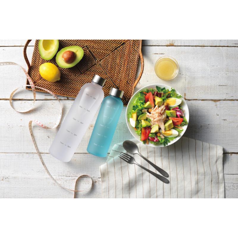こまめな水分補給で体を整えよう。時間メモリ付きなので1日の目標水分摂取の管理がしやすいです。軽さと丈夫さを実現しています。