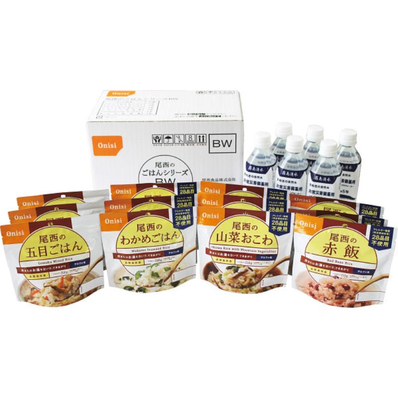 防犯・防災の備えに 尾西の和風メニュー+お水セット SE×12BW