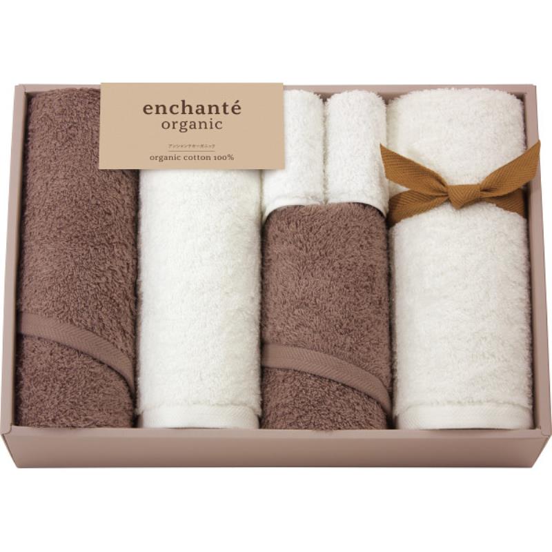 ギフト好適品 アンシャンテオーガニック スリムバス・フェイスタオル・タオルハンカチセット ココアブラウン 44080