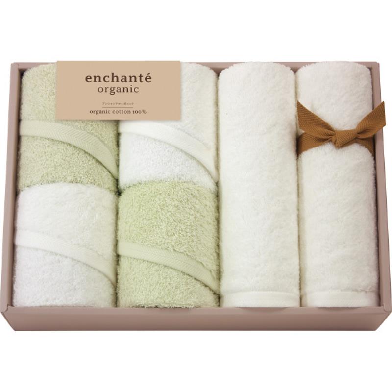 ギフト好適品 アンシャンテオーガニック スリムバス・フェイスタオルセット アイスグリーン 55100