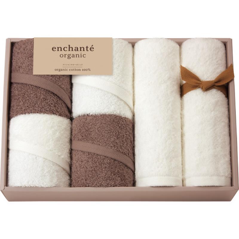 ギフト好適品 アンシャンテオーガニック スリムバス・フェイスタオルセット ココアブラウン 44100