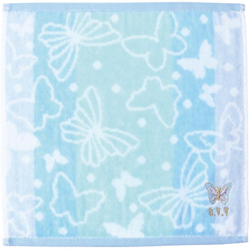 ギフト好適品 アーヴェーヴェー 婦人タオルハンカチ グラデ×蝶ブルー AVT-520 BL