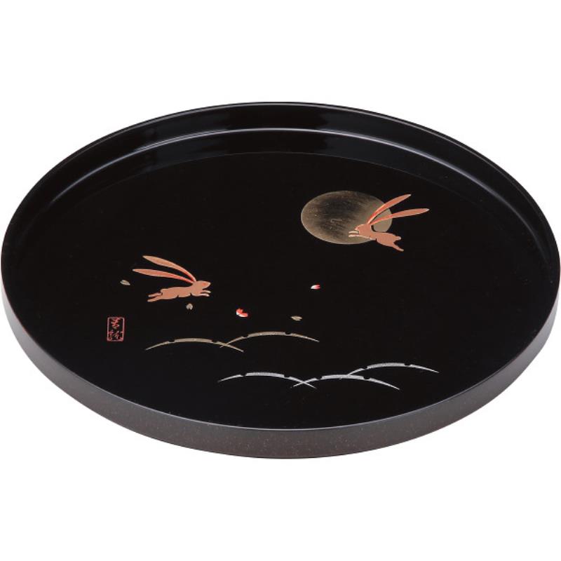 ギフト好適品 紀州塗 月とうさぎ 尺丸盆 黒 26501