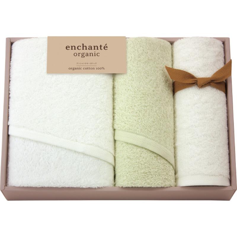 ギフト好適品 アンシャンテオーガニック スリムバス・フェイスタオルセット アイスグリーン 55050