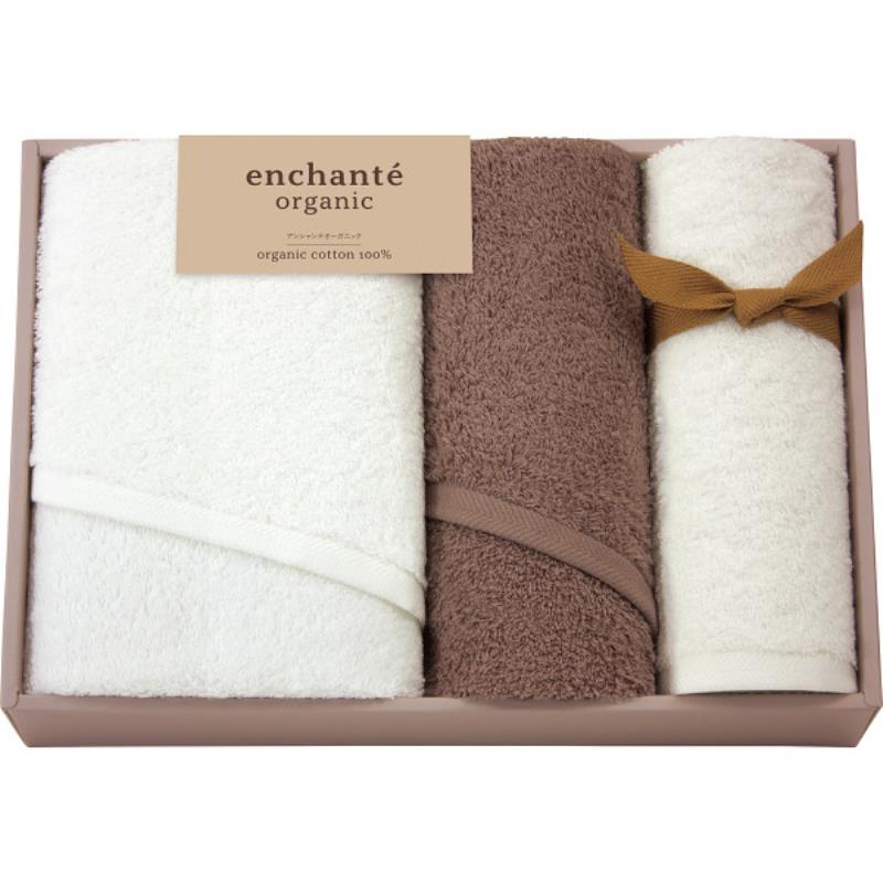 ギフト好適品 アンシャンテオーガニック スリムバス・フェイスタオルセット ココアブラウン 44050