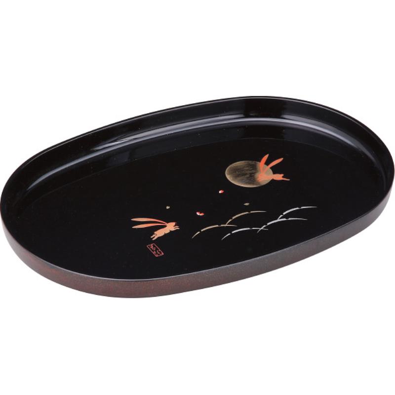 ギフト好適品 紀州塗 月とうさぎ 尺4長手盆 黒 26525
