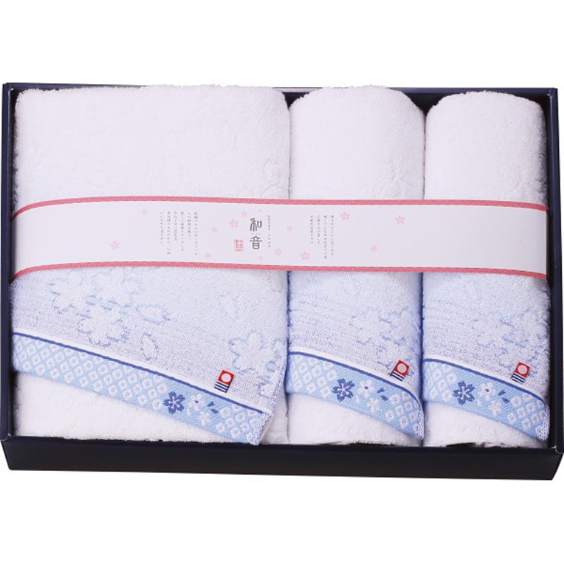 ギフト好適品 なごみね(桜) バス・フェイスタオルセット ブルー