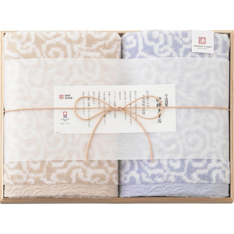 ギフト好適品 今治謹製 紋織タオル バスタオル2枚セット(木箱入) ブルー