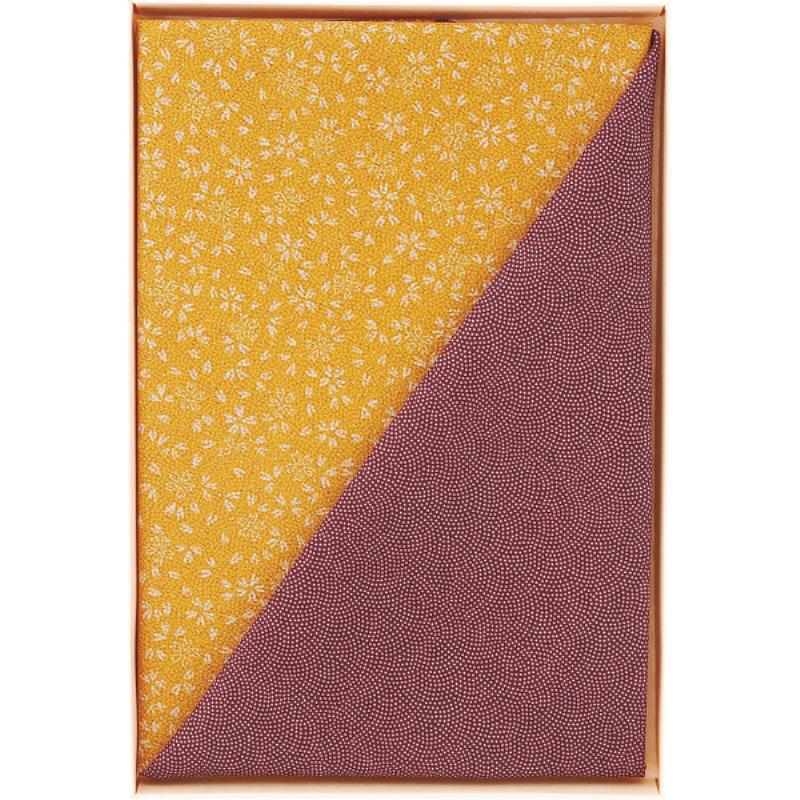 ギフト好適品 二巾一越織両面柄ふろしき 紫/金茶 サメ小紋/小桜 90-7
