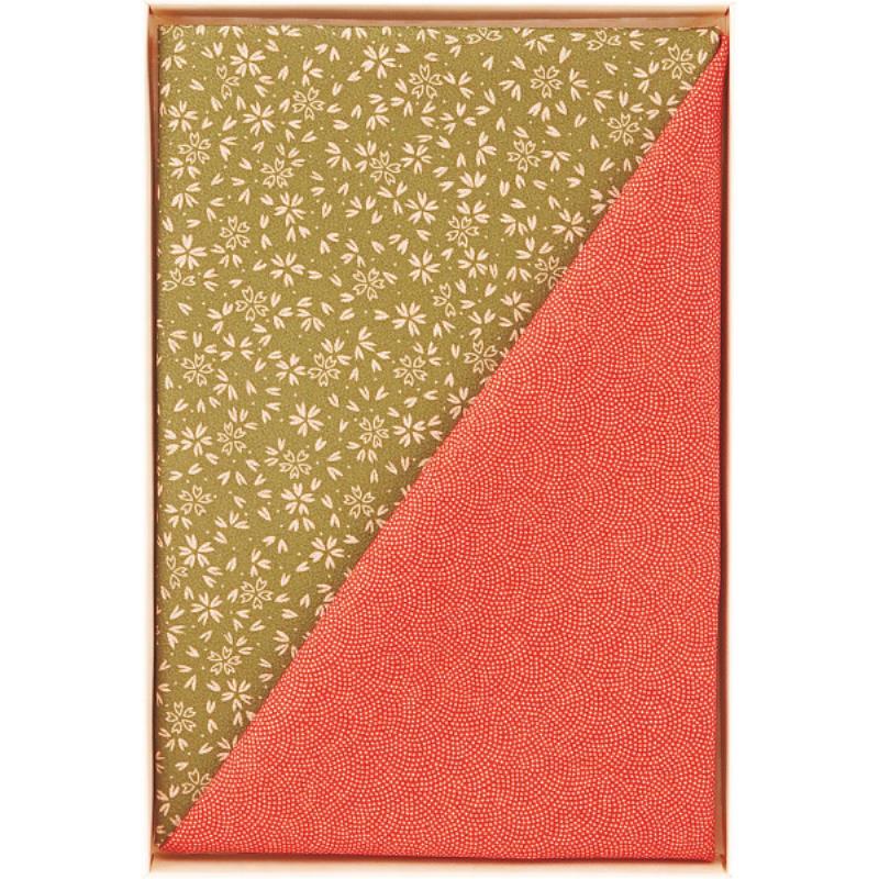 ギフト好適品 二巾一越織両面柄ふろしき 朱/利休 サメ小紋/小桜 90-8