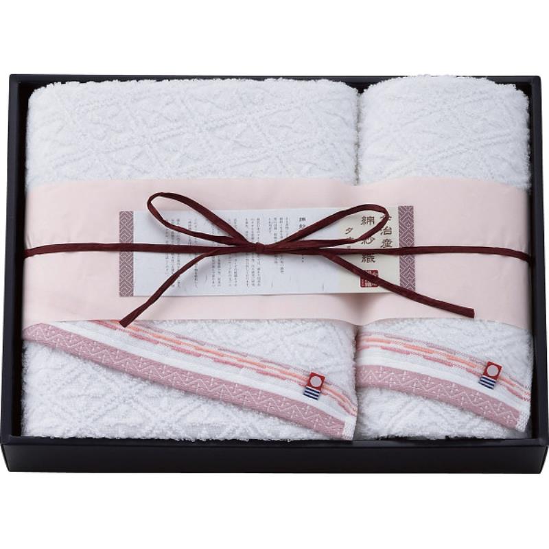 ギフト好適品 今治綿紗織 バス・フェイスタオルセット ピンク MOK-23425